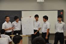 8月27日(火)に中学校3年生特別選抜コース、高校1年生特別選抜特別進学コースと総合進学コースの希望者、高校2年生特別選抜特別進学コース生徒対象に、東京オリンピック特別授業(EF東京2020公認教育プログラム)を実施しました。教育機関EFから2名の外国人講師を招き、中学校3年生と高校1年生にはオリンピック精神について、高校2年生には平和学習の一環としてオリンピック休戦について英語で講義をしてもらいました。最後にはグループワークで独自のオリンピックロゴやオリンピック休戦ポスターを作成し、発表を行いました。